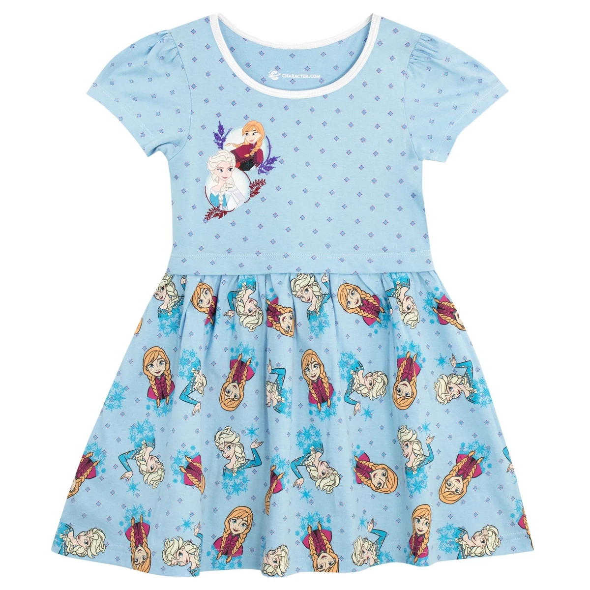 Disney Frozen Anna Elsa Dress Kids Girls 18 24 Months 2 10 Years Blue Polka Dots Ebay